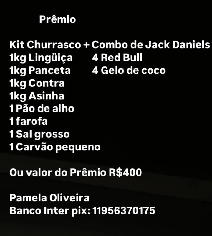 Kit Churrasco + Combo de Jack Daniels ou R$ 400 no pix