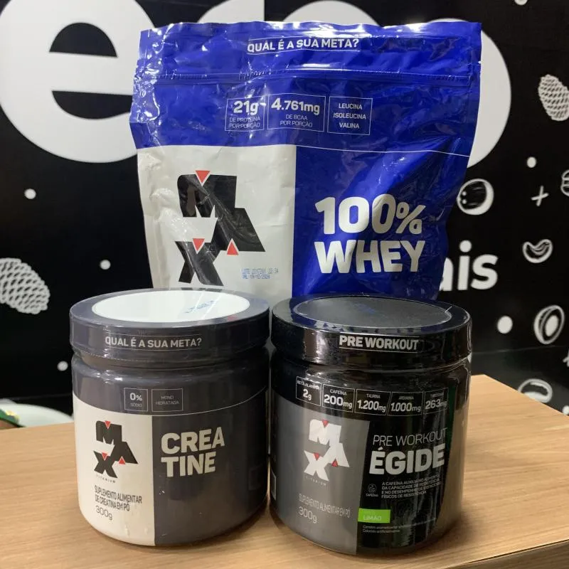 Kit Suplementos Max Titanium, Whey 100%, Creatina Pura, Pretreino Égide.