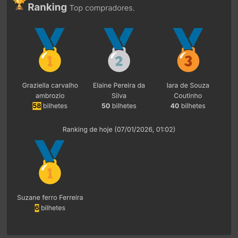 📅 A Data do sorteio será divulgado quando obter 70% das cotas vendidas.jssjj