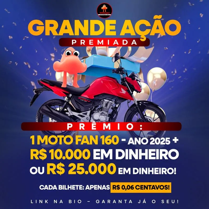 2° Adquira seus bilhetes e concorra a 1 Linda Moto CG Fan 160 2025+R$10K, Ou 25K na Conta.