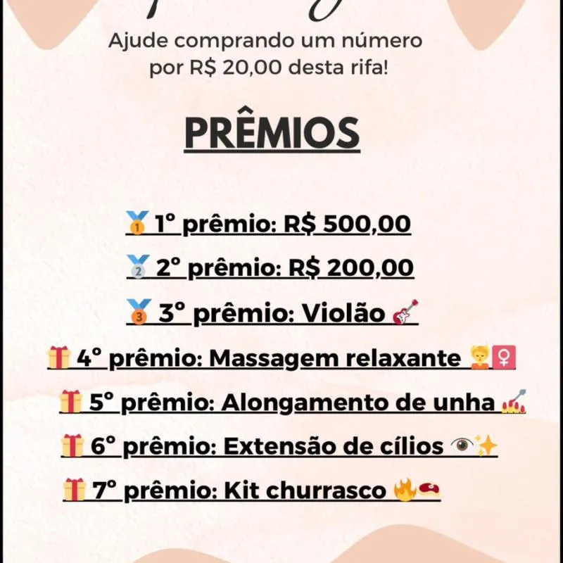 🎟️ Valor da rifa: R$ 20,00