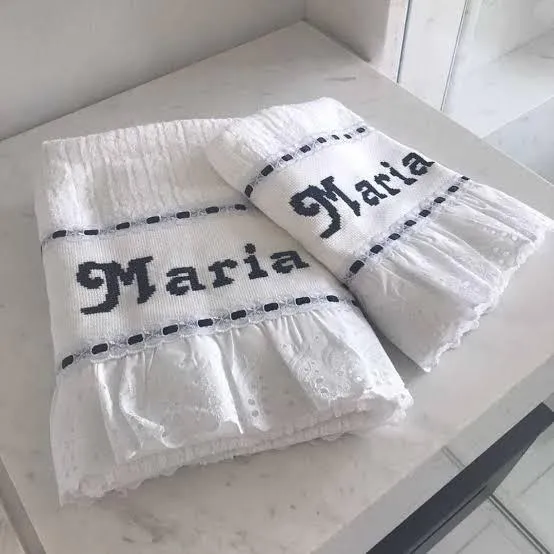 Quem for a pessoa que for o ganhador receberá um lindo conjunto de toalha contendo uma toalha de banho e uma de rosto, as duas personalizadas com um nome a sua escolha. Imagem ilustrativa.