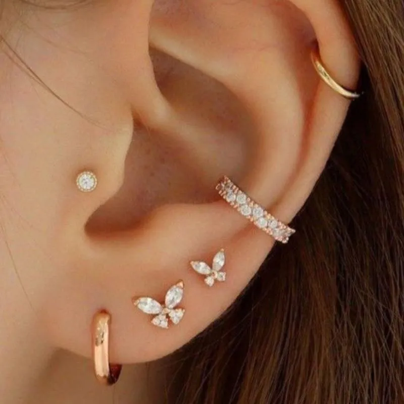 👂 Seis perfurações + 6 Joias em Titânio Natural com pedraria em Swarovski;