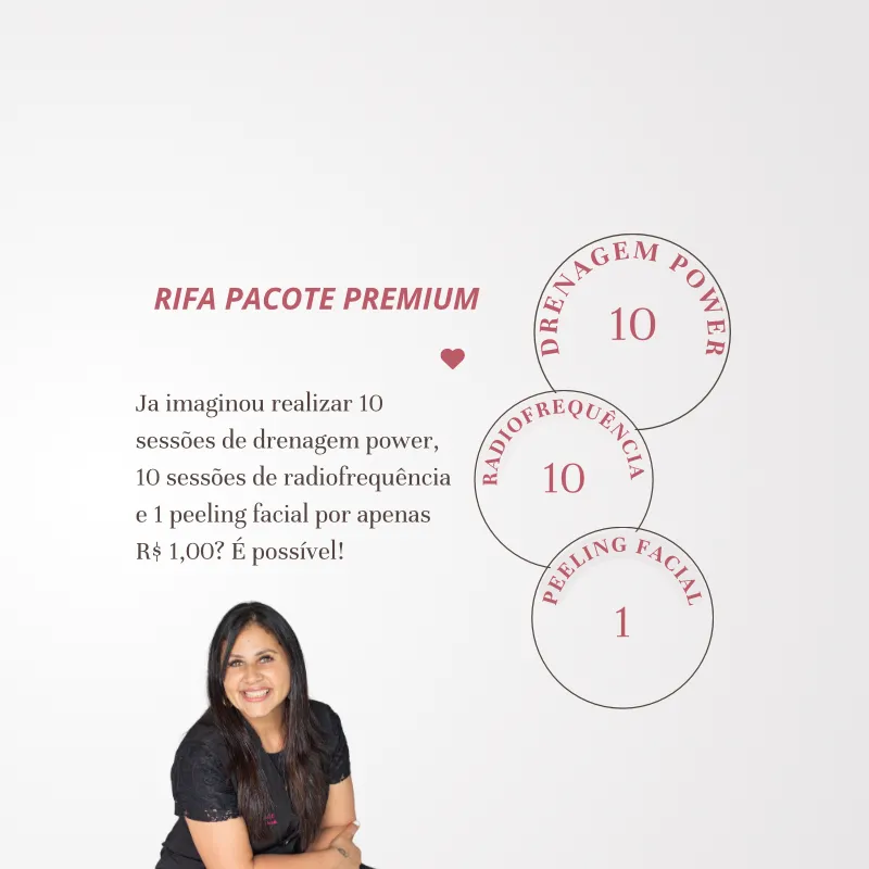 1º lugar - 10 sessões de Drenagem Power + 10 sessões de Radiofrequência + 1 Peeling Facial 🤩