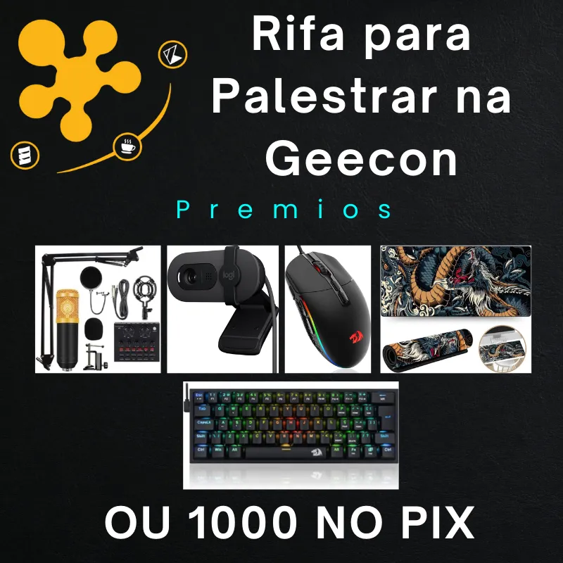 - Prêmio: Teclado Mecanico, Mouse Gamer, Mouse Pad gamer, Webcan Logitech, microfone ou 1000 reais no pix