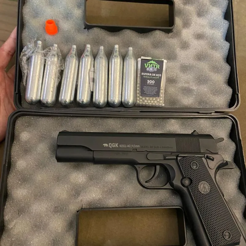 Pistola de airsoft - C02 1911 BK 4,5mm Full Metal - QGK Acompanha: Maleta, 6 cilindros de gás, uma caixinha de esfera de aço e nota fiscal.