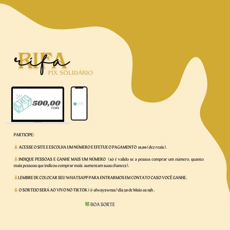 💰 O SORTEIO SERÁ AO VIVO NO TIKTOK (@ alwayswnss) dia 30 de Maio as 19h .