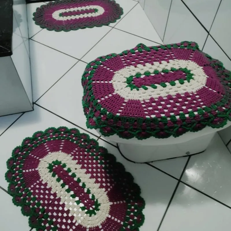 um lindo jogo de tapetes para banheiro
