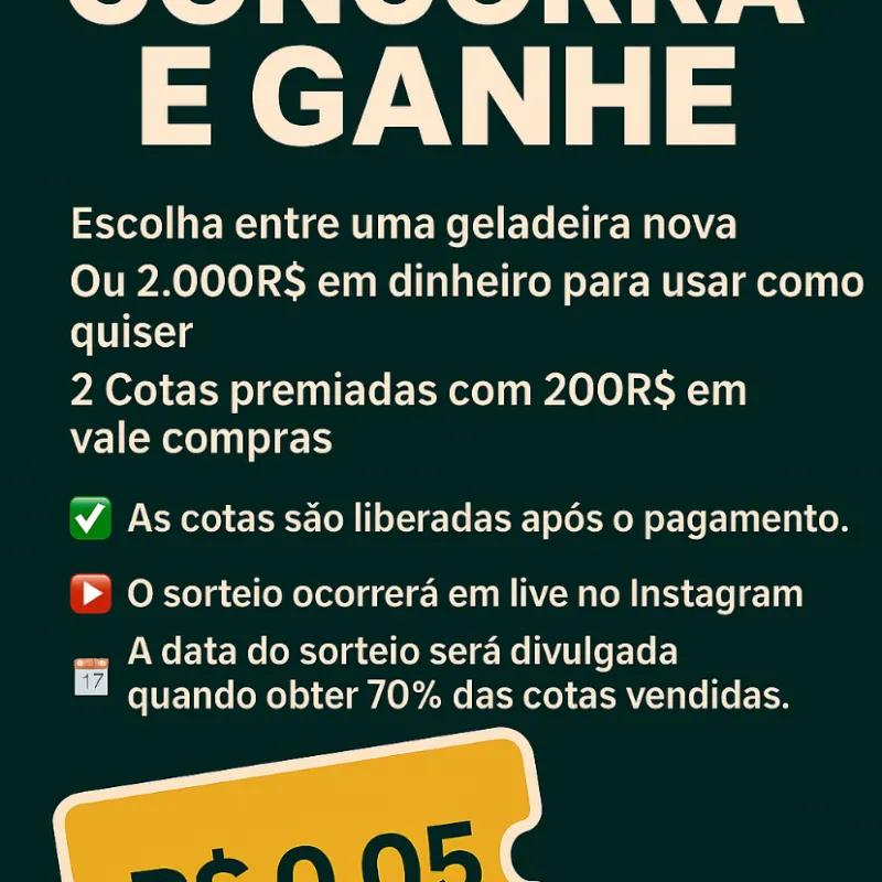 📆 A Data do sorteio será divulgado quando obter 70% das cotas vendidas.