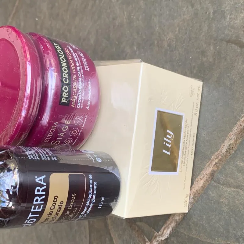 Kit produtos de beleza, creme corporal Lily, 2 óleo corporal do Terra, 1 máscara de hidratação capilar.