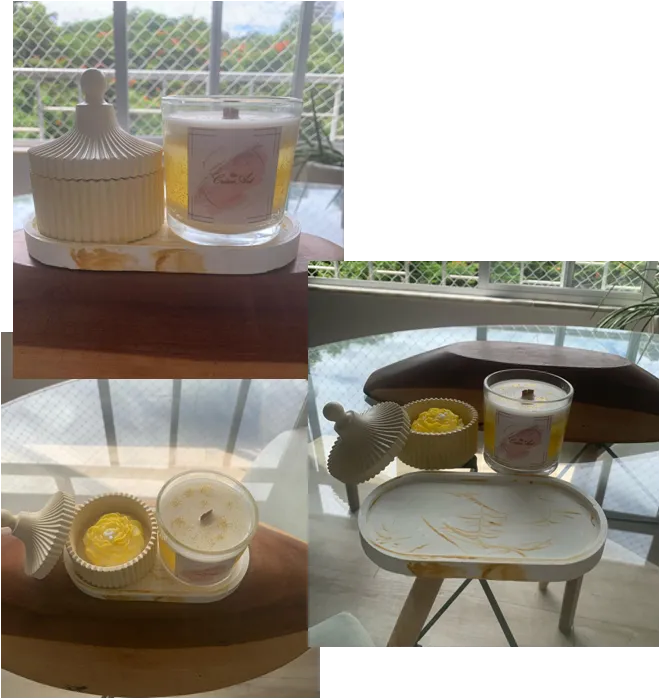 Nesta rifa vc ganha uma bandeja, um pote de tampa com um linda vela em formato de rosa, uma vela feita de parafina em gel e cera de coco e um brinde surpresa.