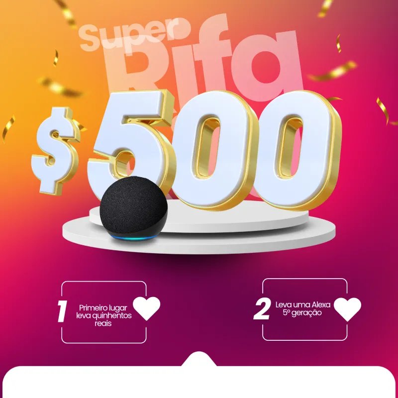 O sorteio será realizado através do sorteador.com. Será dois sorteados, o primeiro ganhará R$500,00 quinhentos reais, e o segundo lugar uma Alexa 5° geração.