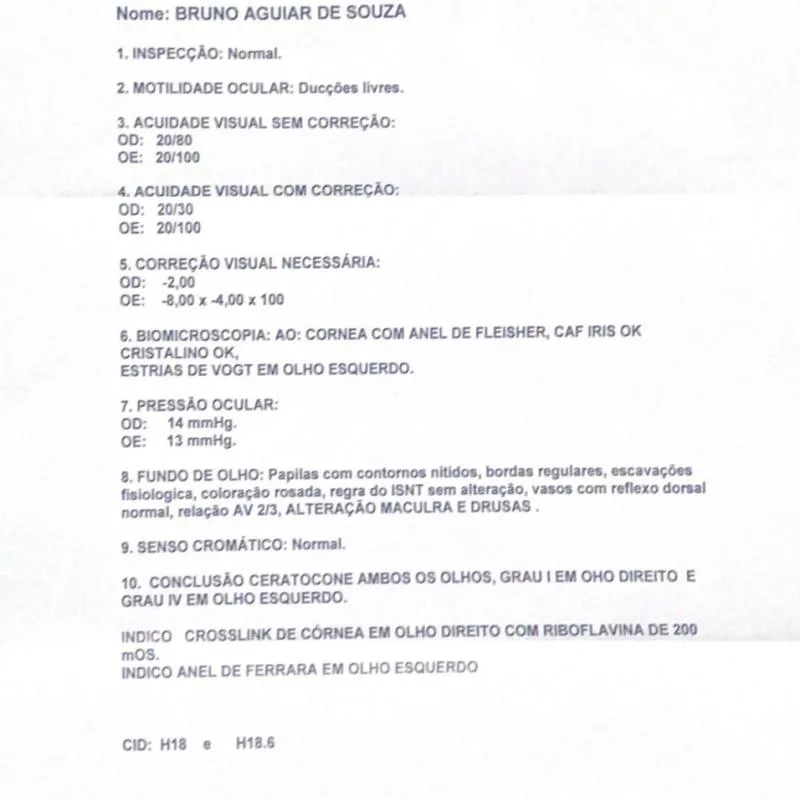 Venho aqui com o coração apertado pedir a ajuda de todos vocês. Meu filho Bruno foi diagnosticado com ceratocone, uma doença que afeta a córnea e que está comprometendo gravemente a sua visão. Infelizmente, o avanço da doença é rápido e, sem a cirurgia necessária, Bruno corre o risco de perder a visão completamente.