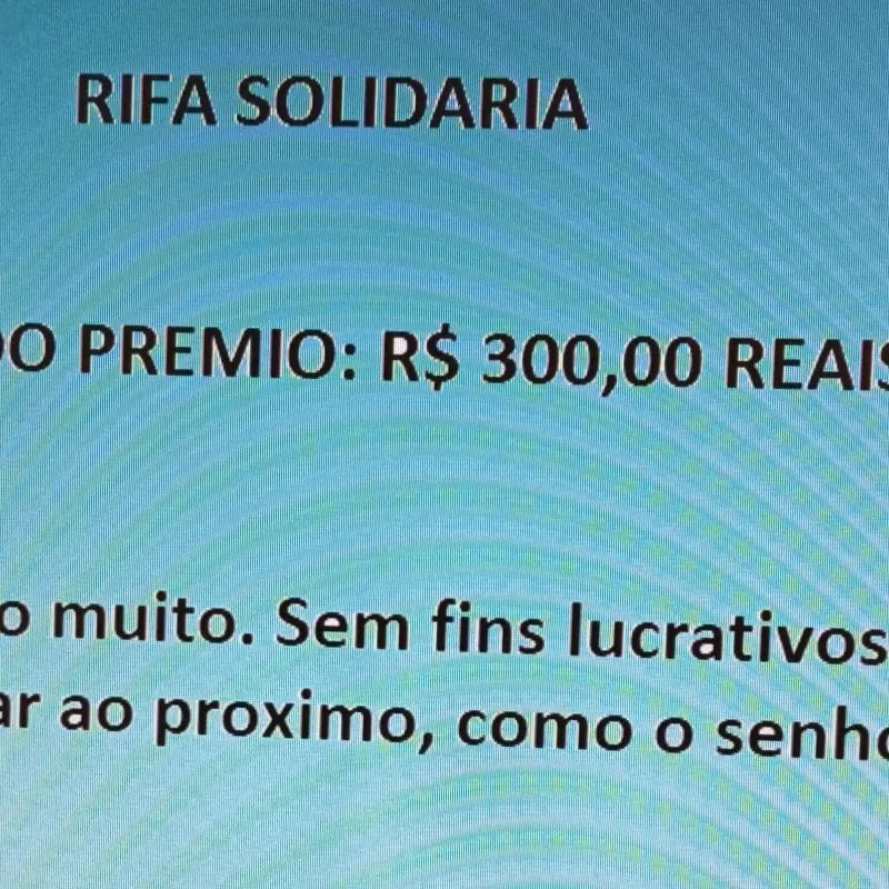O intuito desta rifa é ajudar uma amiga, que recentemente acabou caindo em um golpe, e infelizmente eu não consigo ajudar. Agradeço a todos de coração que participar.