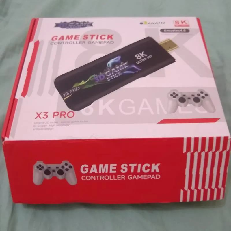 Game Stick PRO 8k com 30.000 jogos, dois controles sem fio, cabo HDMI. Excelente pra quem gosta de relembrar os bons tempos de fliperama!