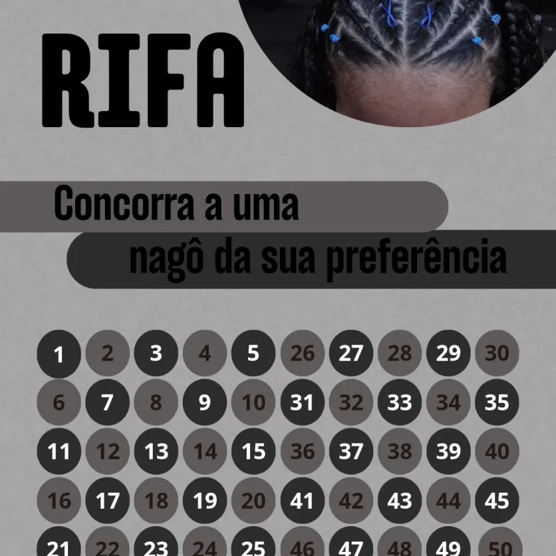 essa rifa foi feita para arrecadar dinheiro para comprar um câmera fotográfica profissional, para eu estar fazendo um curso profissionalizante de fotografia, vc pode concorrer a uma trança nagô da sua preferência ou 50tão no pix.