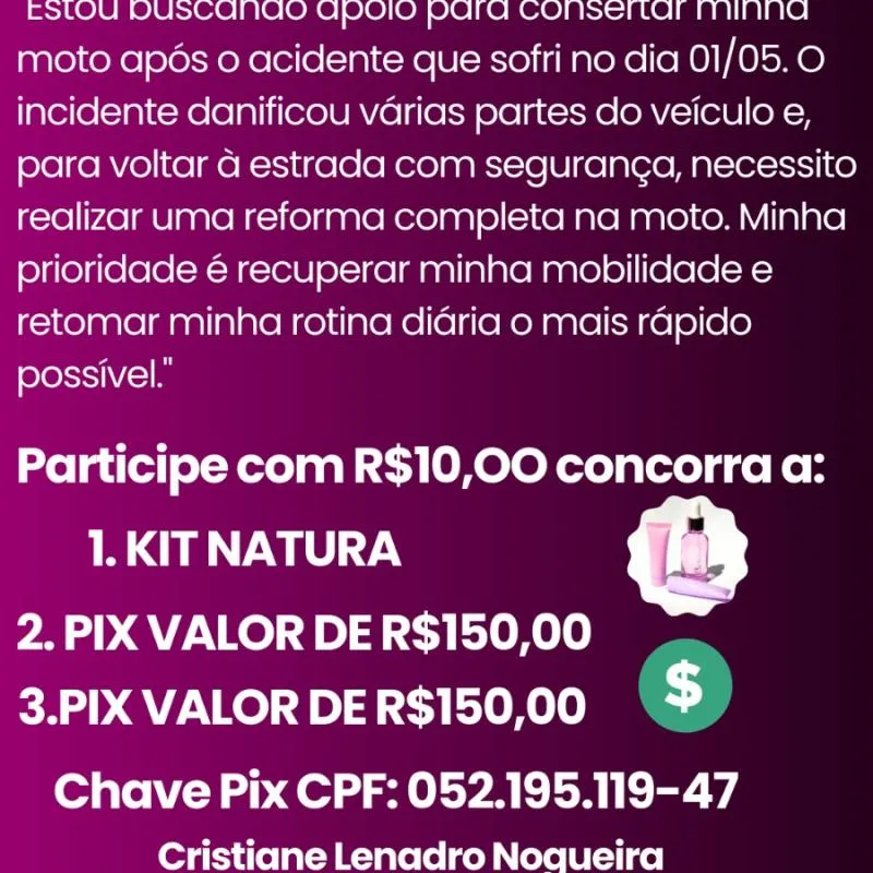 Rifa da cris ajuda beneficiaria