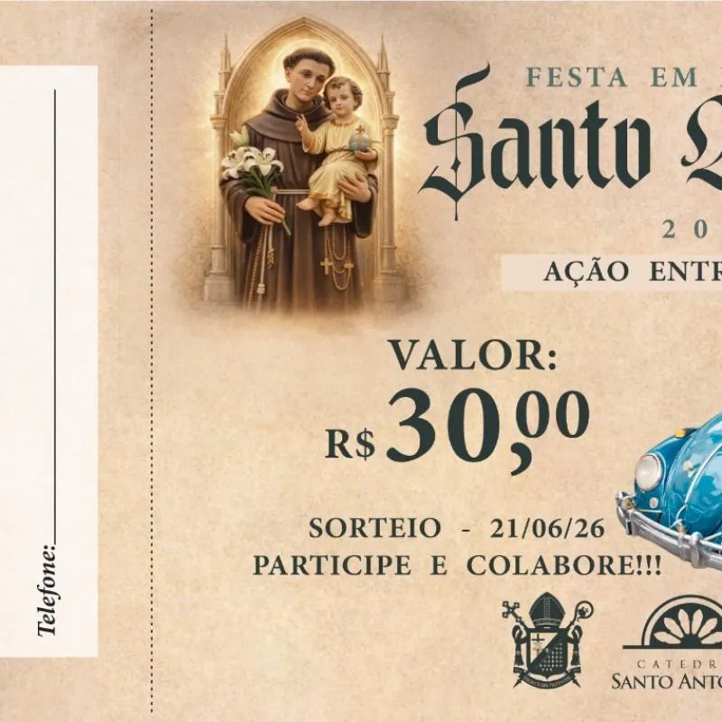 A renda será toda destinada para os projetos de evangelização da paróquia Santo Antônio.