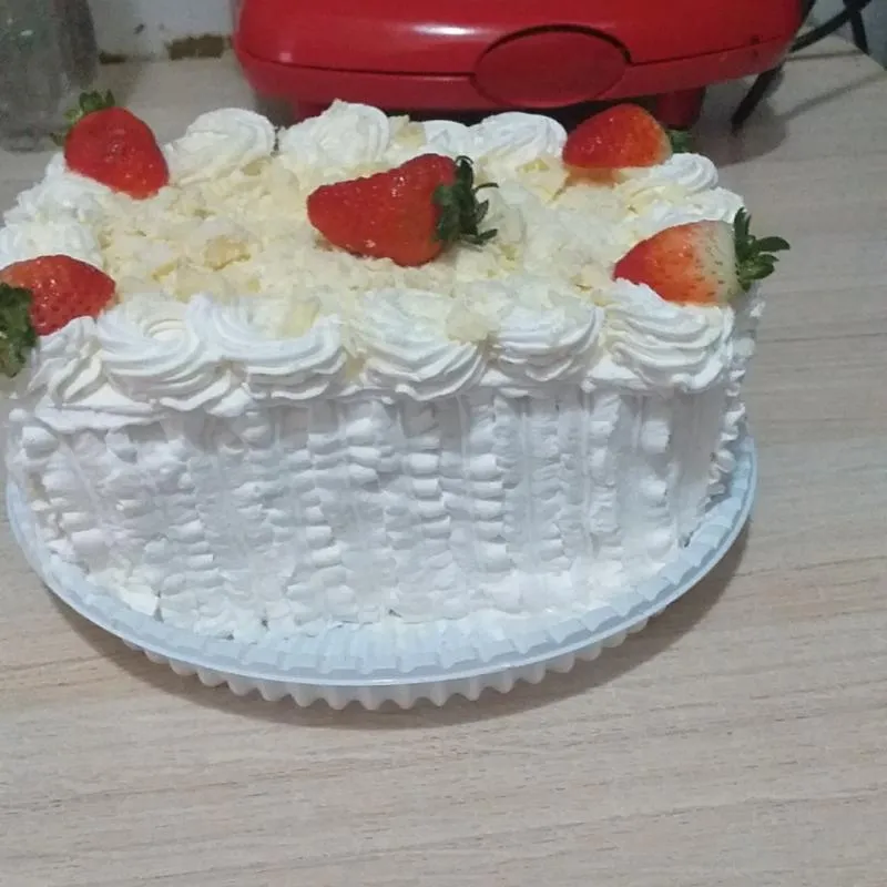 Rifa. De 1 bolo serve 10 fatias recheio brigadeiro branco com morango