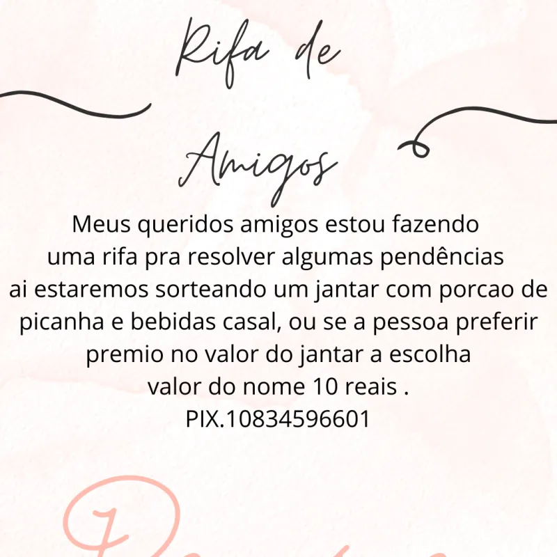 Primeiro premio jantar casal porcao de picanha e bebida ou valor no pix