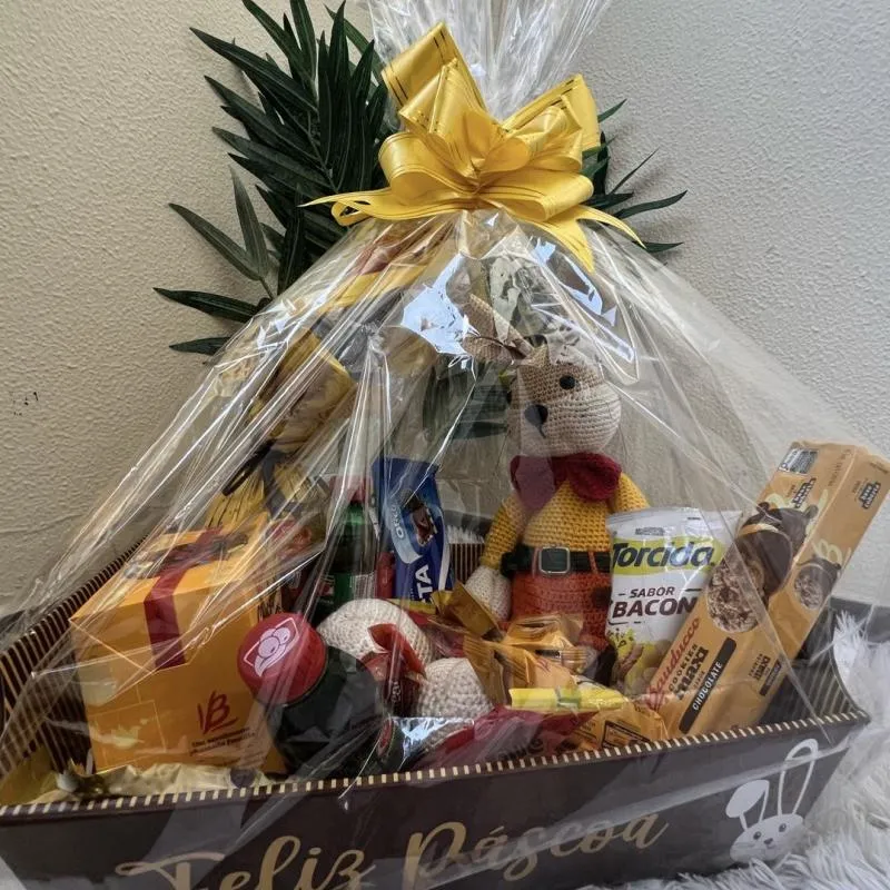 Você está concorrendo a uma cesta recheada de doces e guloseimas, 01 delicioso ovo de Páscoa e um lindo coelho de Amigurumi! Esse coelho está procurando um amiguinho 🐇