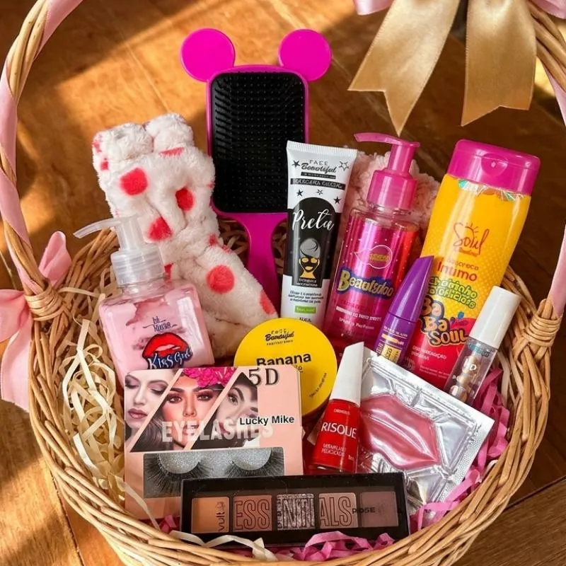 ✅ Cesta de make & cosméticos com mais de 15 itens diversos