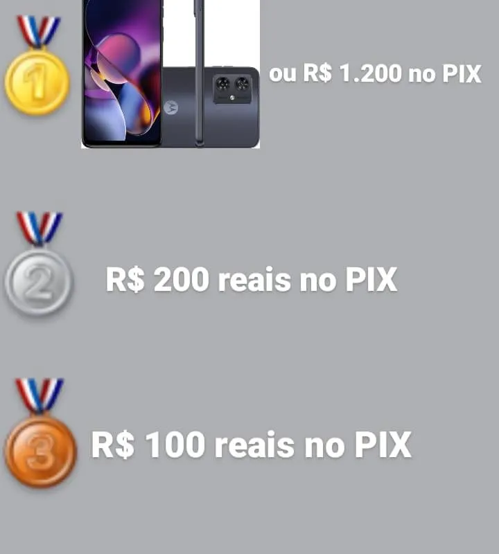Você poderá escolher entre R$1.200,00 no P!X ou o celular Motorola G54 128GB
