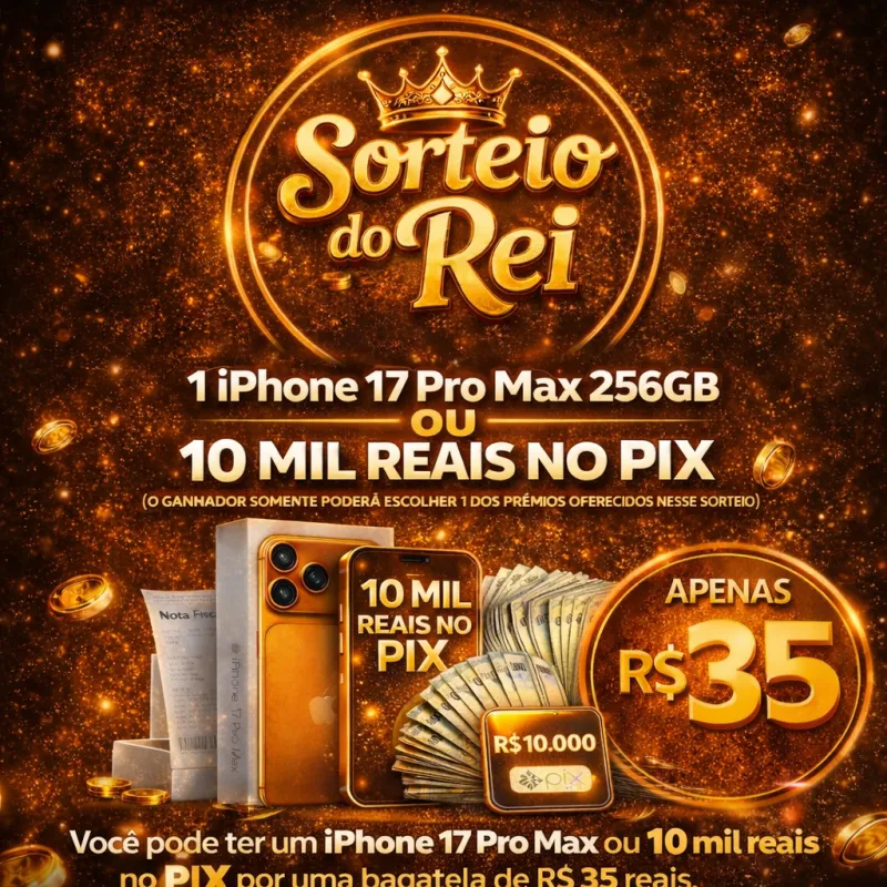 Já imaginou ganhar um iPhone 17 Pro Max, lacrado, com Nota Fiscal, ou receber R$ 10mil no PIX, por apenas R$35?