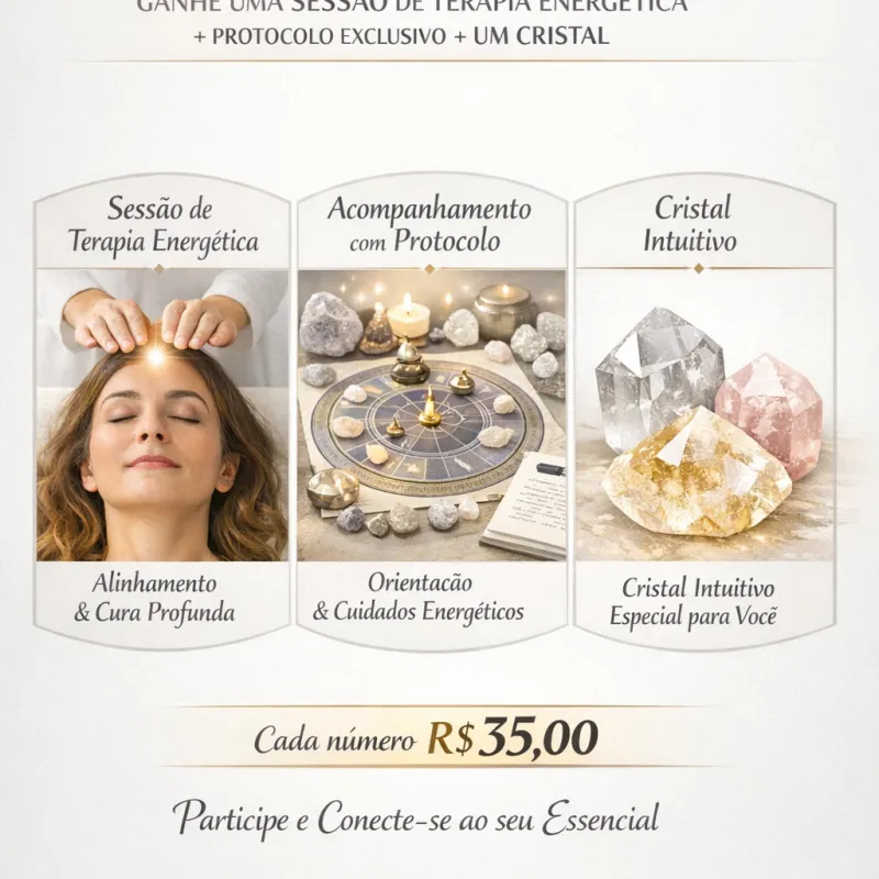 Sessão de terapia energética + protocolo exclusivo + 1 cristal intuitivo🎟 Valor: R$ 35,00 por número