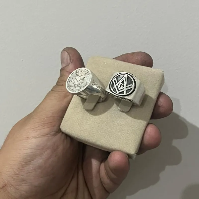 1 - Anel Esquadro e Compasso Grande em Prata 925 💎💍