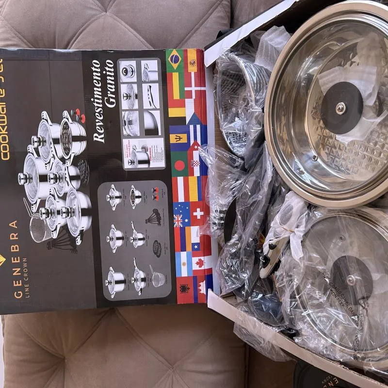 Jogo de Panelas, 23 peças, feitas de Aço Cirúrgico, com 9 camadas de cerâmica, sendo antiderrapantes. Possuem Certificados de garantia Mundial!