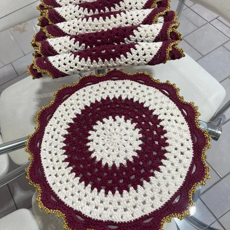 • 1 jogo de sousplat com 6 unidadesem crochê artesanal, feito com materiais de alta qualidade e bom acabamento.