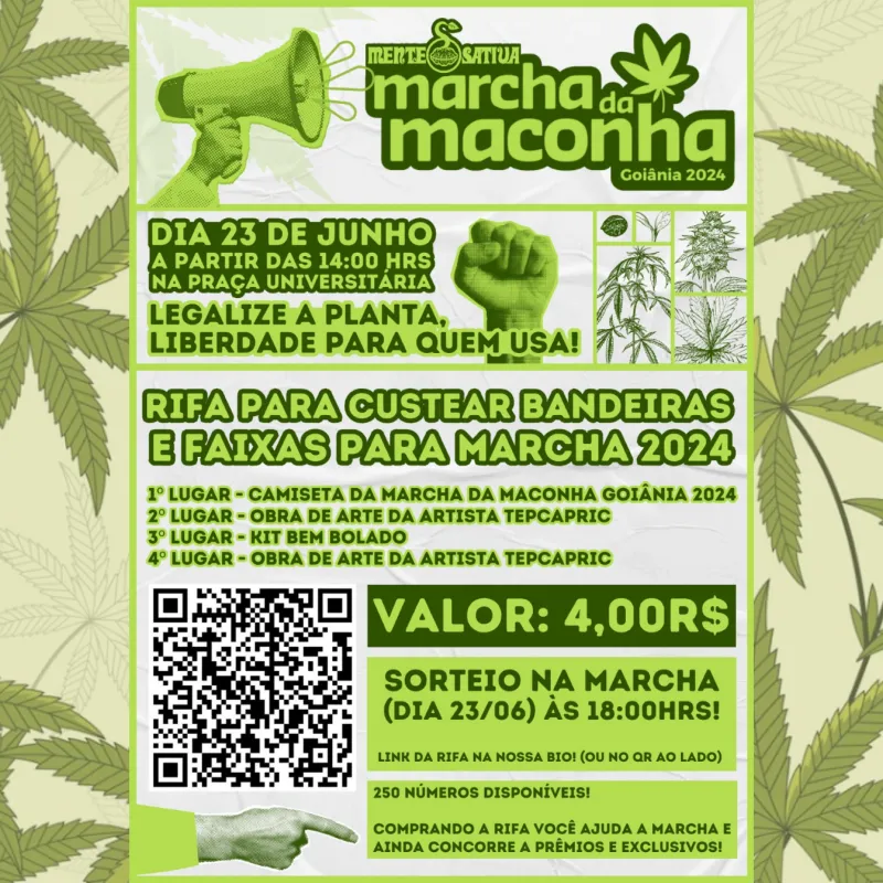 Rifa para Custear as Bandeiras e Faixas da Marcha da Maconha Goiânia 2024
