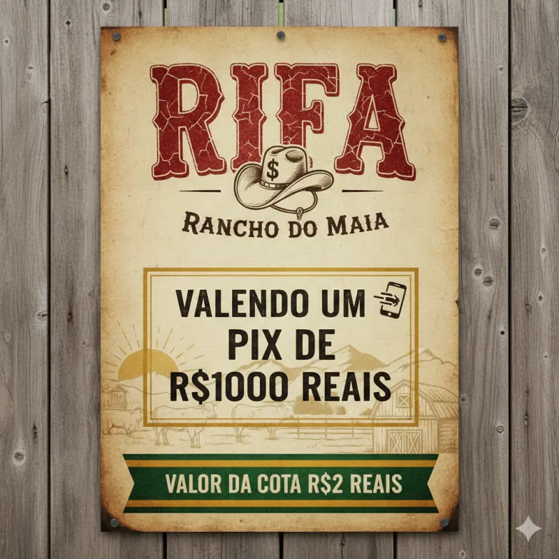 RIFA VALENDO PIX DE 1000 REAIS