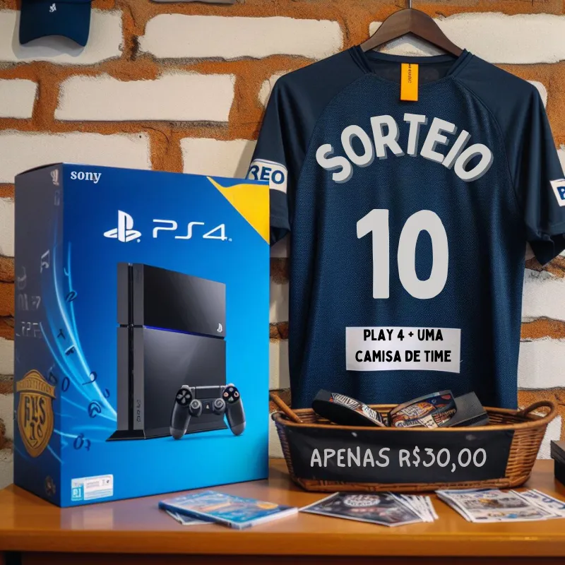 Você tem a chance de ganhar um pacote incrível neste sorteio exclusivo! Por apenas 30 reais, você pode concorrer a um Playstation 4 e uma camiseta de time totalmente personalizada com o nome e número que você escolher.