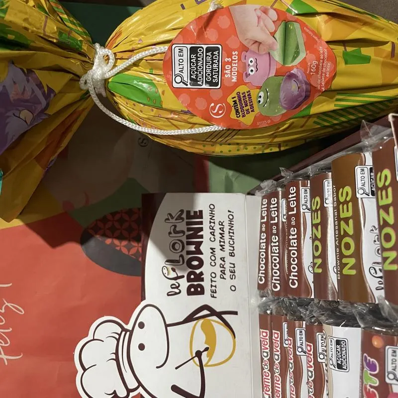 Já pensou em levar 1 caixa de brownie (12 unidades) + 1 ovo Cacau Show 160g. 🐰🍫🤩