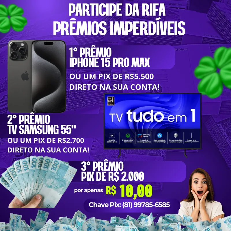 📅 A Data do sorteio será divulgado quando obter 80% das cotas vendidas.