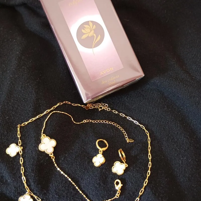 Rifa de um kit de Semi Jóias Flowers Folheado a Ouro, e uma Deo Colônia Avon IMARI ECLIPSE (uma fragrância para desvendar o lado misterioso de cada mulher. IMARI ECLIPSE trás a combinação da Picante Pimenta Rosa com a misteriosa Tuberosa e a sensualidade do PATCHOULI).