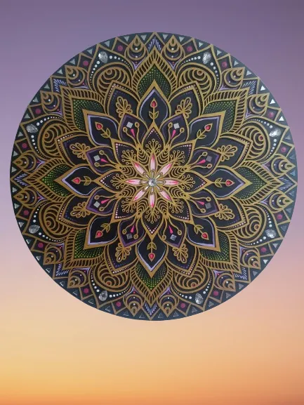 O prêmio é uma Mandala pontilhada de 60 cm de diâmetro, feita à mão, com detalhes em pequenos espelhos e chatons, na superfície de MDF.