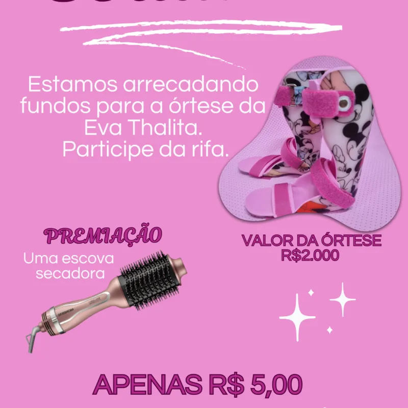 A Rifa Solidária Eva Thalita tem como objetivo arrecadar fundos para a aquisição de uma órtese, essencial para seu tratamento e qualidade de vida.
