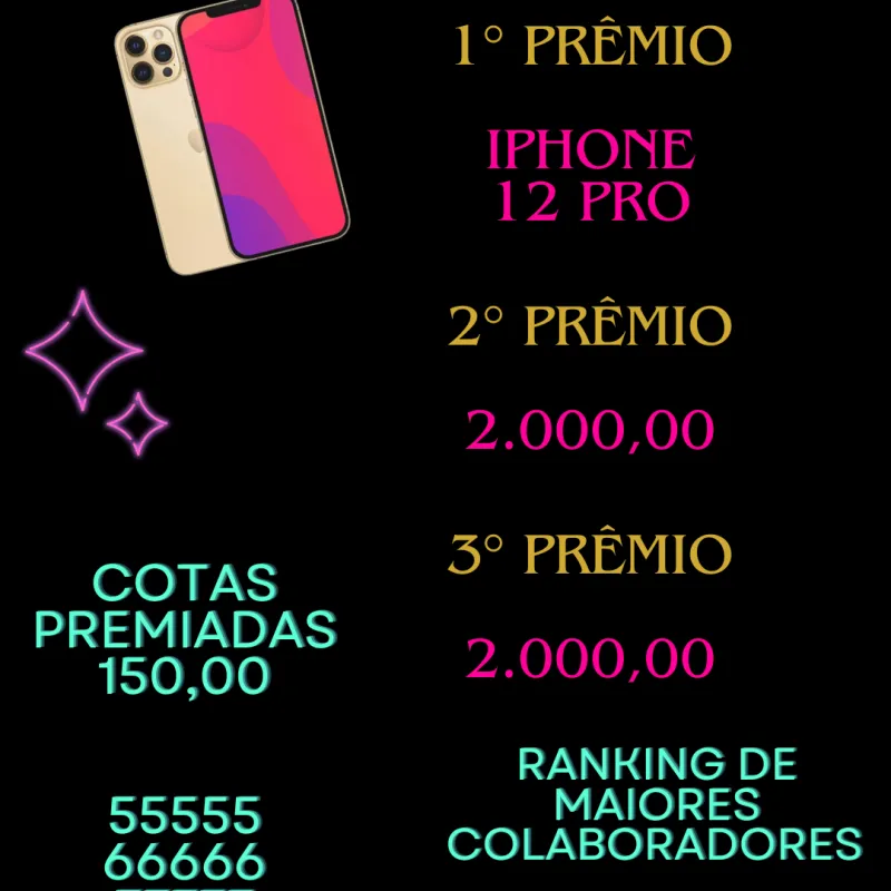 📅 A Data do sorteio será divulgado quando obter 70% das cotas vendidas. Data prevista para 12/10/2024