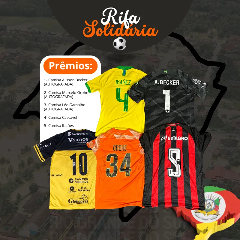 RIFA SOLIDÁRIA PARA AJUDAR ATINGIDOS PELAS CHEIAS NO RS - 5 CAMISAS DE JOGADORES