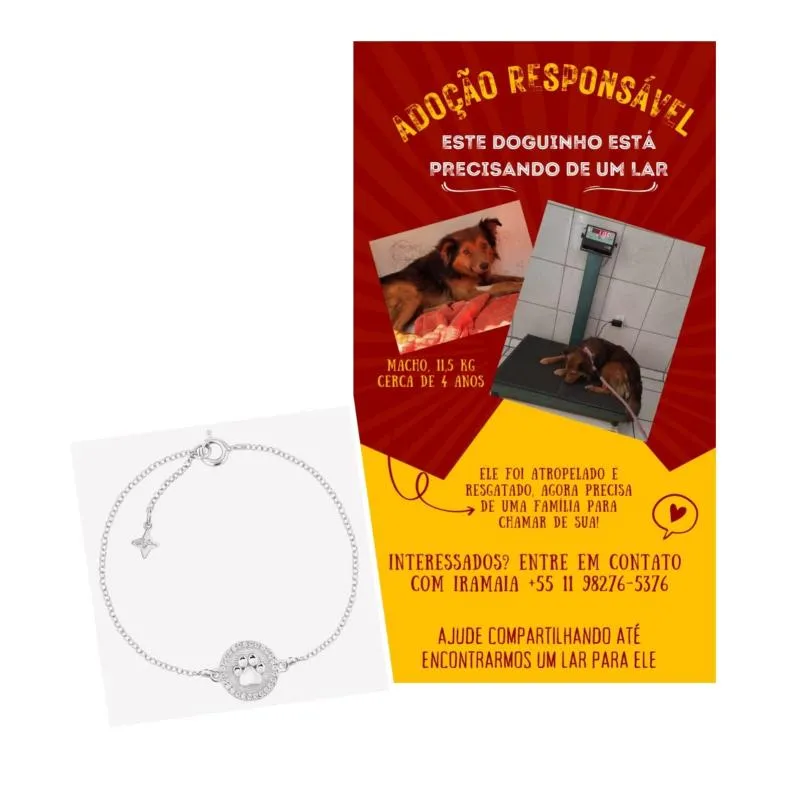 Este doguinho foi encontrado atropelado na Rod. Roposo Tavares e foi resgatado pela Iramaia Figueiredo. Seus ferimentos foram cuidados e agora ele passa bem! Para ajudar com os gastos do veterinário, criamos esta ação para rifar esta linda pulseira da Vivara para você chamar de sua!