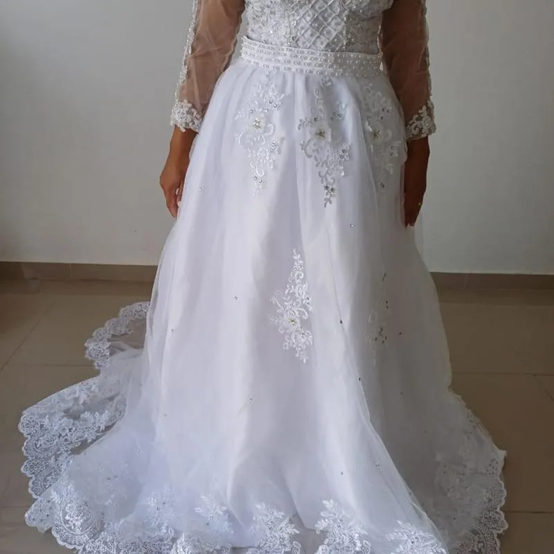 Lindo vestido de noiva 2 em 1 todo bordado em pedraria, acompanha véu 3 metros todo bordado com pérolas.