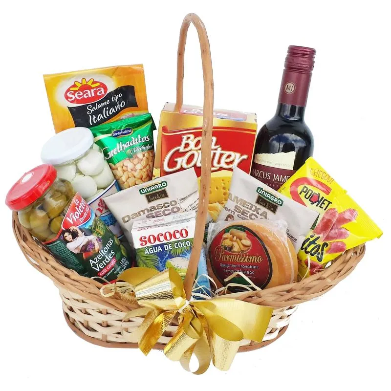 - Vinho, Caixa Chocolate, jogo faqueiro aparelho barbeador, pêssegos, copo térmico, amendoim, creme de leite, protetor Led