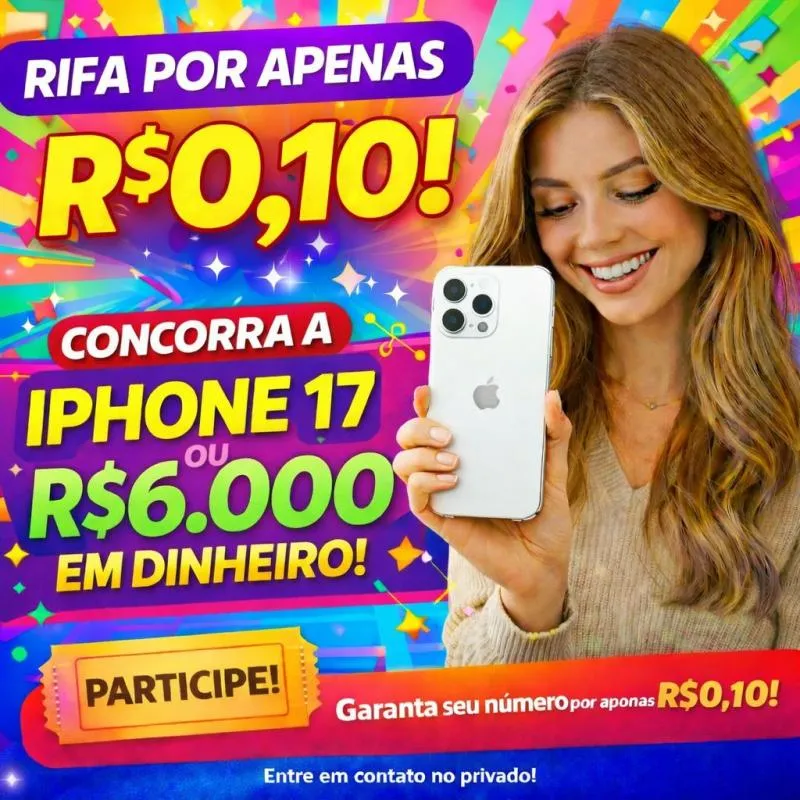 Já pensou em ganhar um iPhone 17 novinho ou levar R$6.000,00 em dinheiro por apenas dez centavos? 😱💸