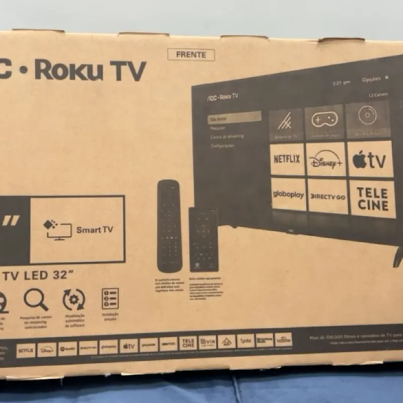 /smart tv 32" hd aoc 32s5045/78g com roku tv, comando de voz, hdmi, usb wi-fi e conversor digital perto de você