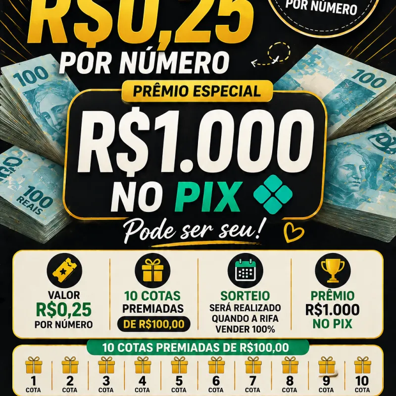 📅 A Data do sorteio será divulgado quando obter 100% das cotas vendidas.