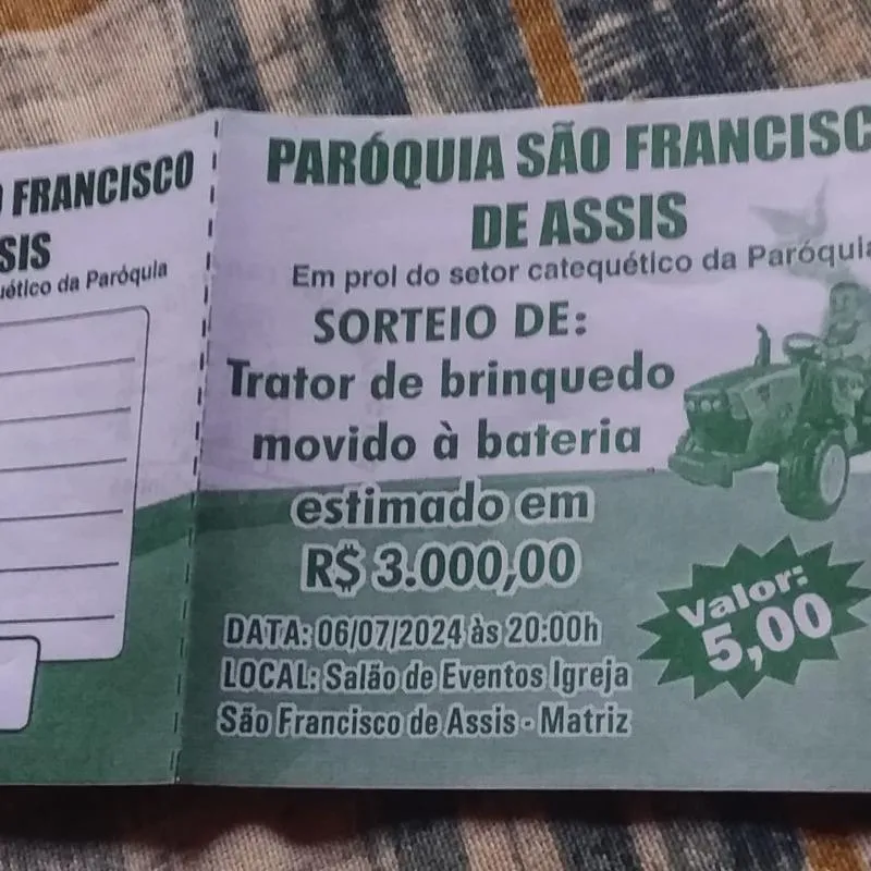 Sorteio de: trator de brinquedo; estimado em 3 mil reais