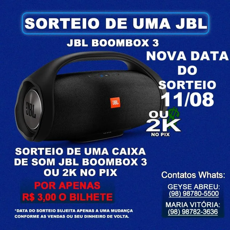 Sorteio de uma JBL bombox3 ou 2mil no pix
